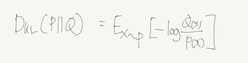 다음은 KLD식이다. P와 Q분포가 동일하면 DKL은 0을, 다르면 다를수록 높은 값을 갖게 된다.