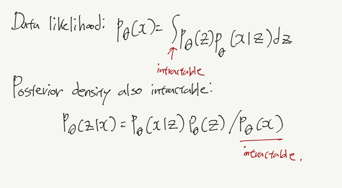 Variational Inference는 사후확률(posterior) 분포 \(p(z \vert x)\)를 다루기 쉬운 확률 분포 q(z)로 근사하는 것을 말한다. 이는 사후확률 분포 계산이 어렵기(intractable) 때문이다.